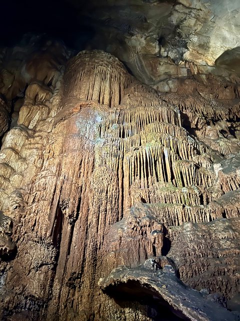 岩壁上的石灰華沉積,紀錄了億萬年來地下水流動、滴落的痕跡。壯觀地就像管風琴般,