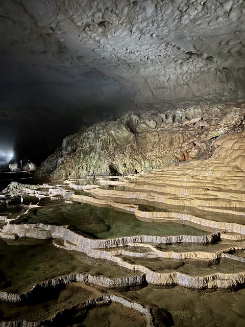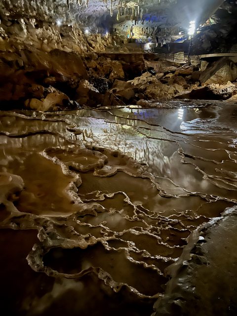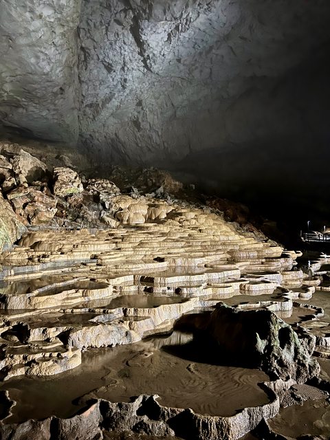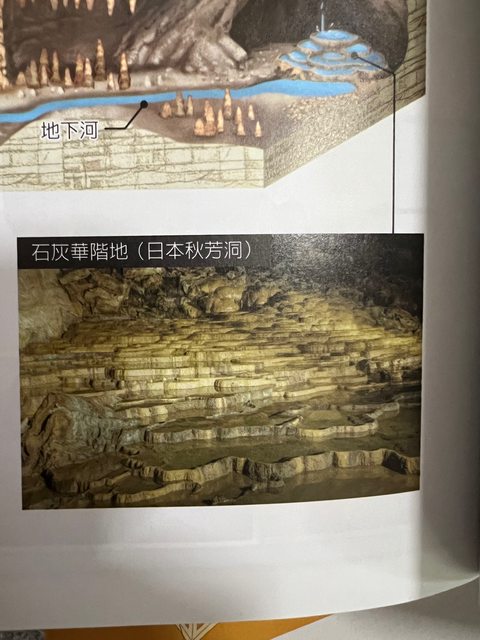 秋芳洞內的另一處石灰華階地「千町田」形成原理與百枚皿相同。聽說裡面有一些眼睛已