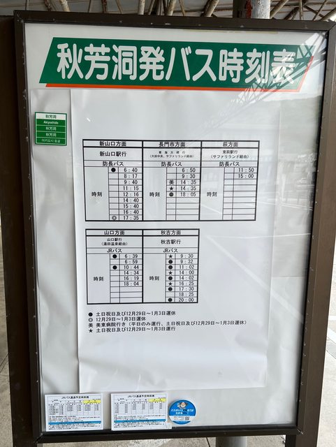 有開網「秋芳洞巴士站」的公車路線,最常用的大概是往來新山口的路線。