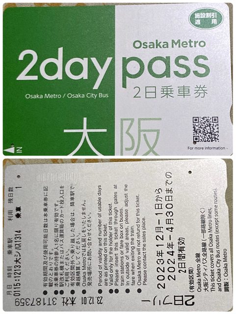 1. 讓售品項:大阪地鐵公車兩日券,剩下一日