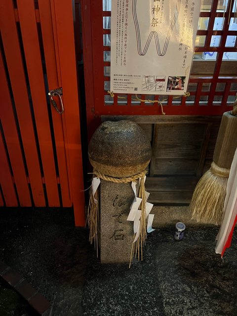 在神社正殿前方,有一塊「なで石」,據說是最初那塊御神體巨石的一部份。摸摸他之後