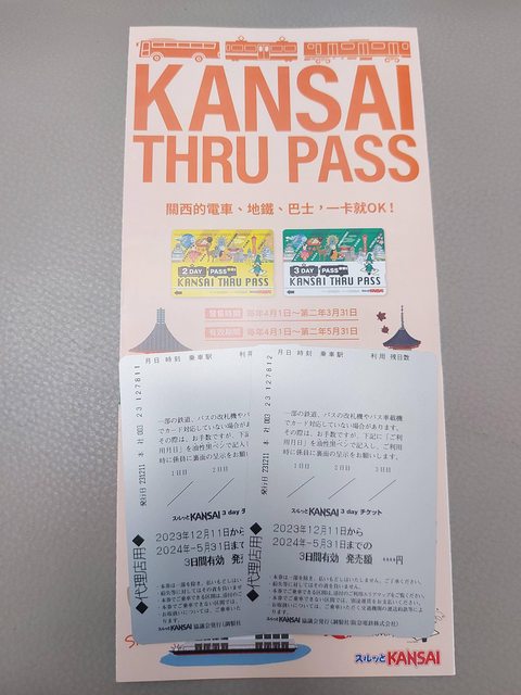 KTP關西周遊卡三日券 2張實體票