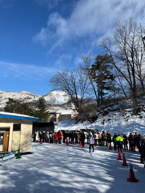 一出站13:16分,瀧見館還有各家溫泉巴士都在等了