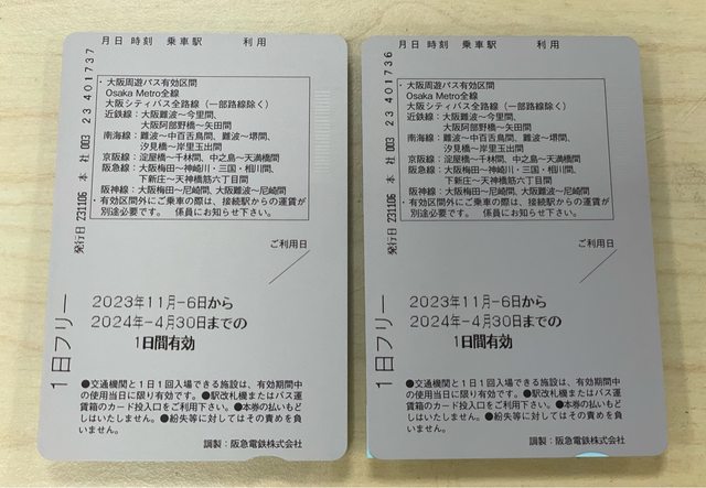 大阪周遊卡1日券*2