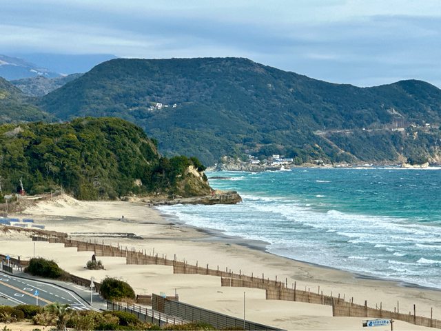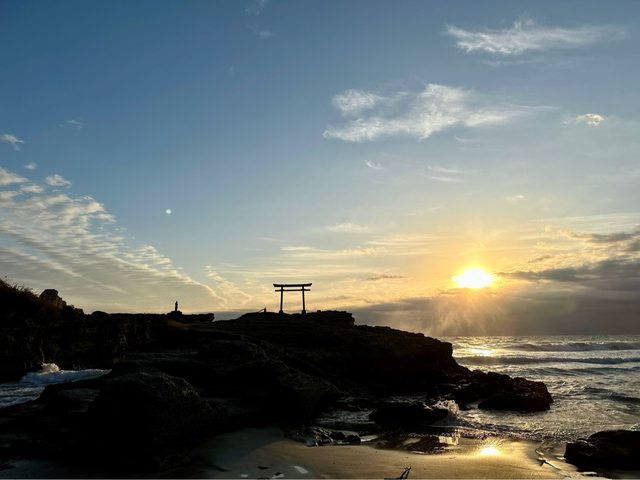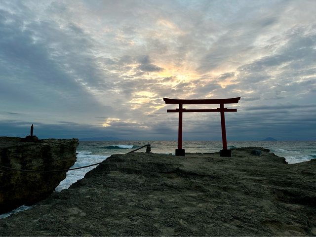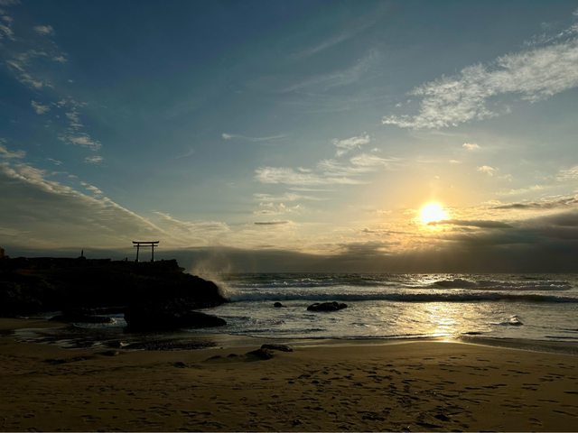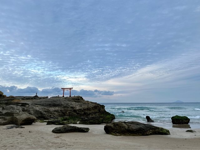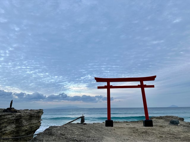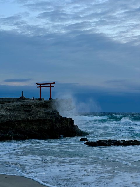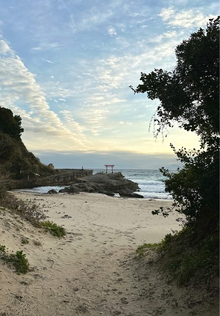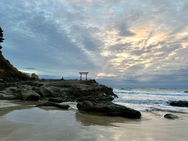 我是訂好房才發現旅館旁有個神社鳥居在海邊!