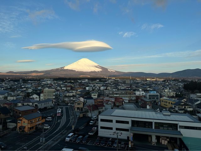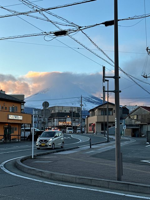 (第一次看到富士山本應是1/22從熱海往御殿場的火車上,但當時剛下完大雨,只看到彩