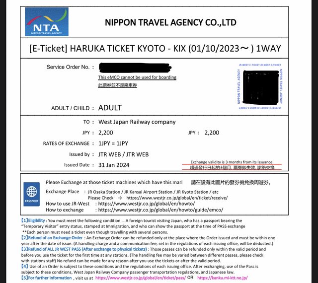 1. 讓售品項:HARUKA 京都-關西機場 車票二張