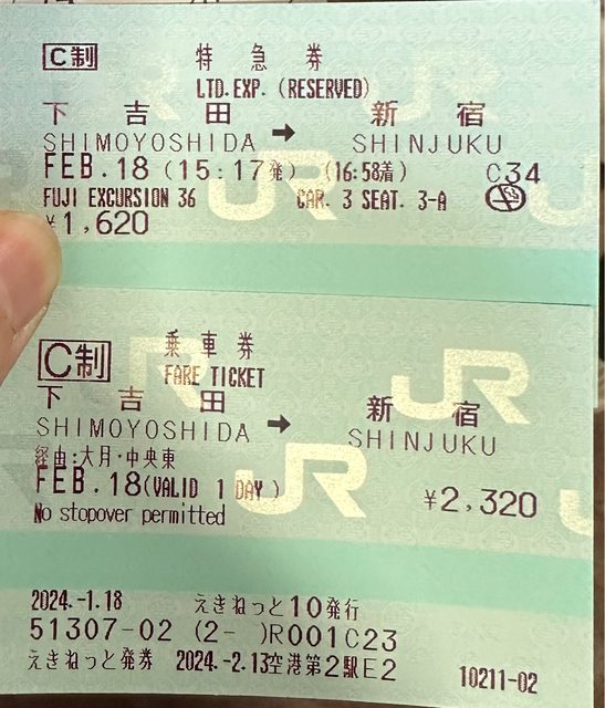 標題[讓售] 2/18 下吉田-新宿 15:17-16:58富士迴游