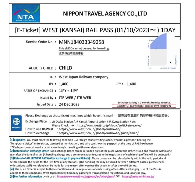 標題[讓售] JR關西地域鐵路周遊券一日(二大二小)