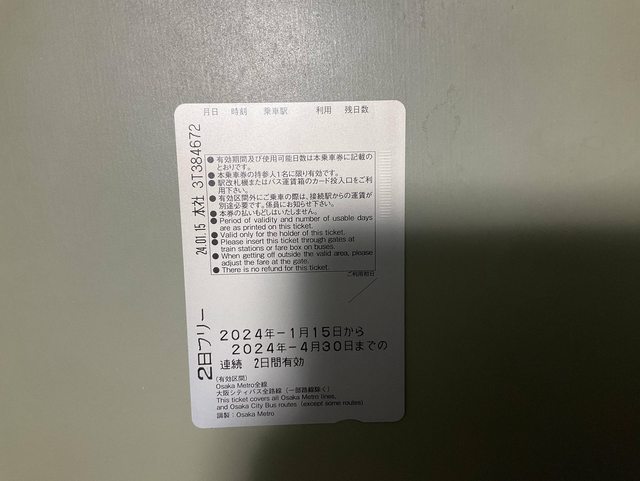 1. 讓售品項:大阪周遊2 days pass x 1