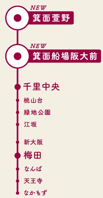 向北新增兩站「箕面船場阪大前」「箕面萱野」