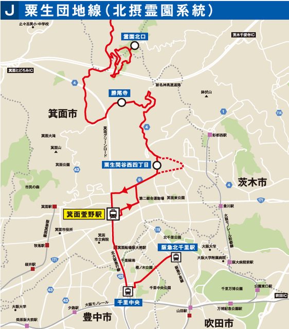 (箕面萱野站在地圖IV-7 かやの中央站牌處)