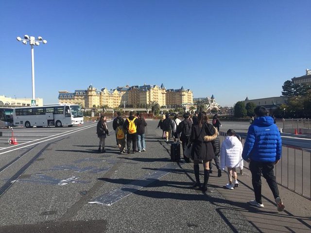 吃完早餐就搭接駁車前往迪士尼樂園了,