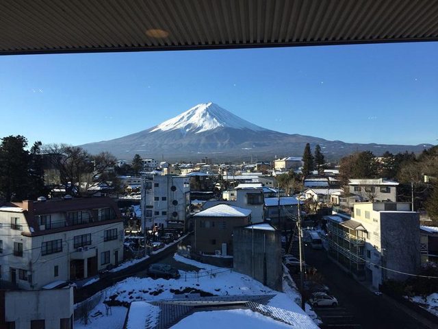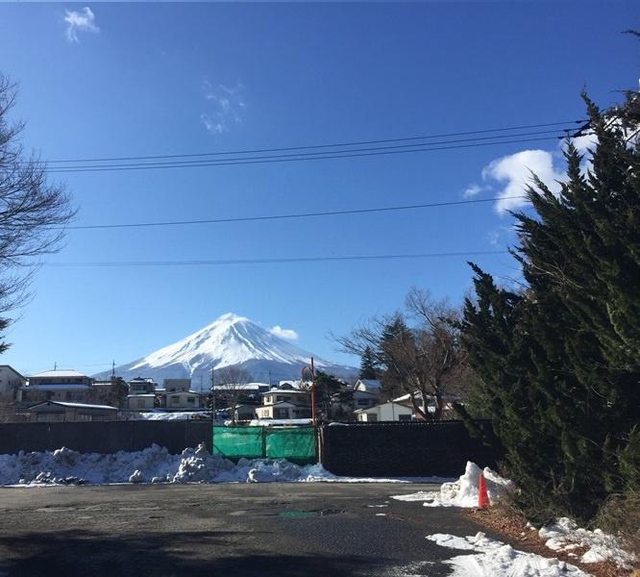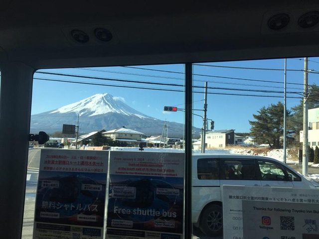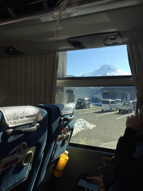 巴士的座位很寬敞,從車窗依依不捨地再看一眼富士山。
