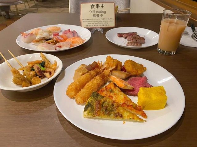 飯店的早餐也是該有的都有,還有現點現做的蛋包、炒蛋跟荷包蛋。