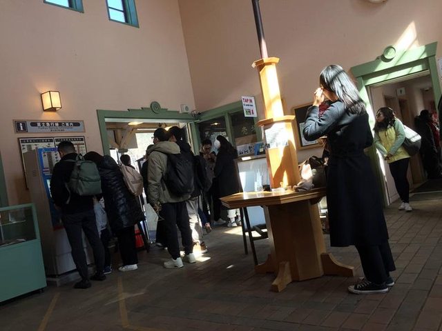 吃完午餐就到巴士站牌排隊,邊看對面ほうとう不動的排隊人潮。