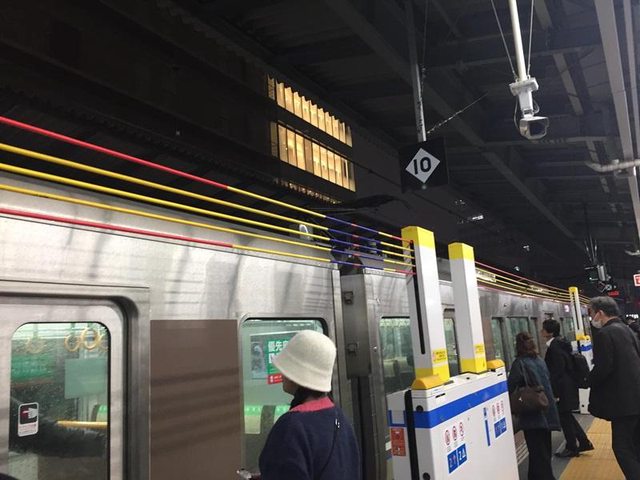 在車站搭車時發現這邊的柵欄是用長長的線,我們一直在想要怎麼讓人過去。