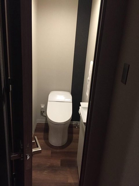整個廁所使用大量的木質裝潢。