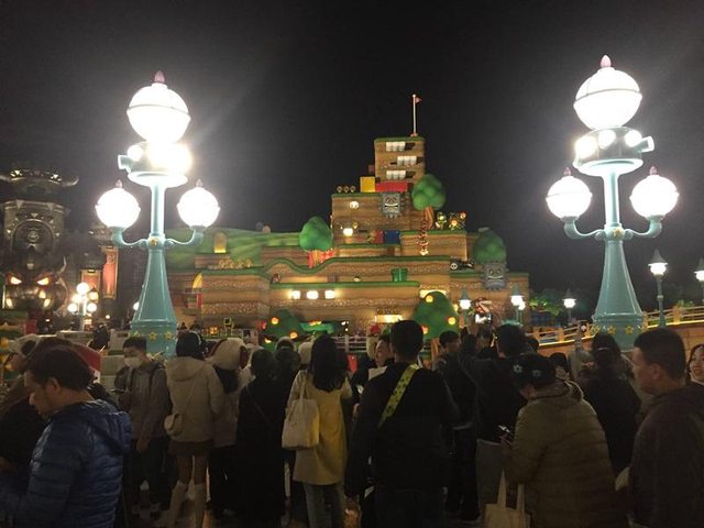 18點15分:任天堂世界。(快通)晚上打上燈光也好看,但人依舊多到可怕……