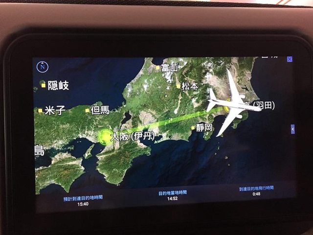 畫面顯示只要48分鐘就會到了,但實際感覺飛在空中時間更短,
