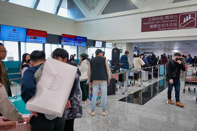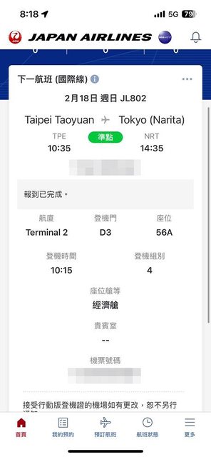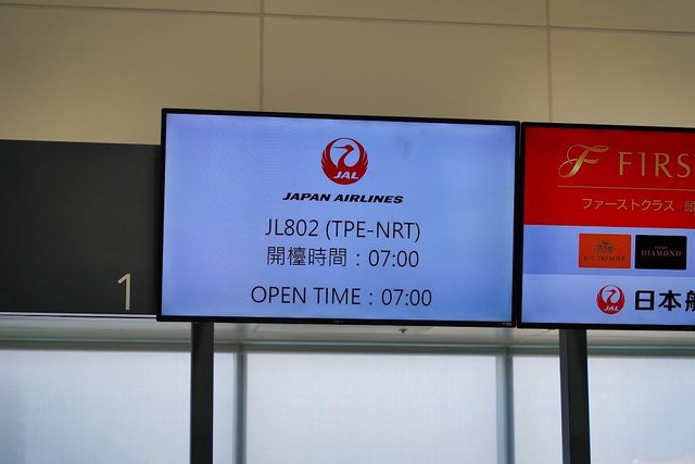接著在櫃檯旁邊等掛行李 日航app顯示6點40分開放報到 但等到了7點42分 螢幕才出現顯示7點可以報到 好像哪裡怪怪的XD