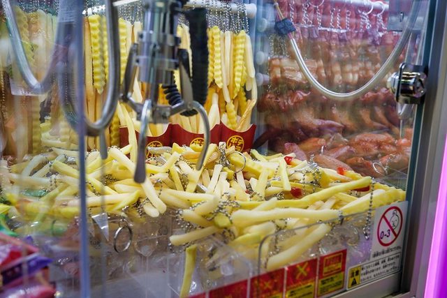 途中經過夾娃娃機店 老婆夾了1根薯條XD