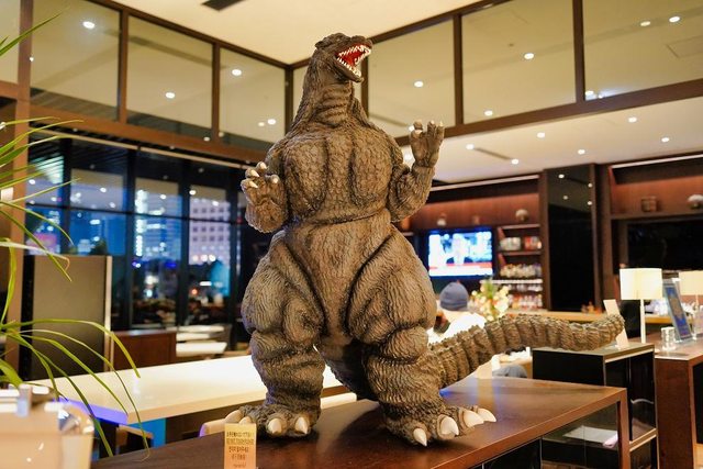 前往lobby的通道有哥吉拉的模型和電影海報