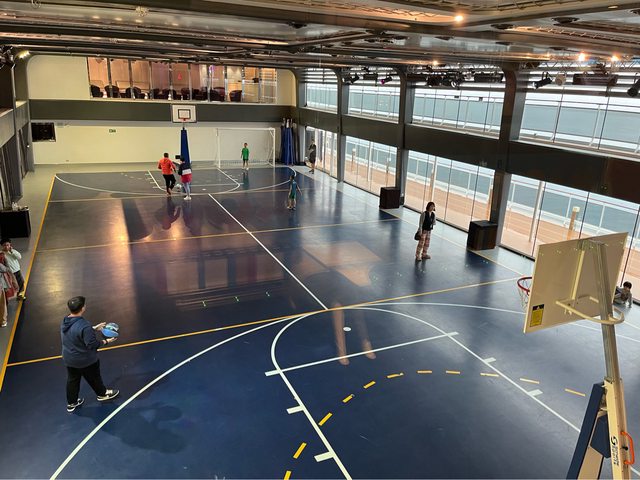 逛逛,有游泳池、籃球場、遊戲室等設施。