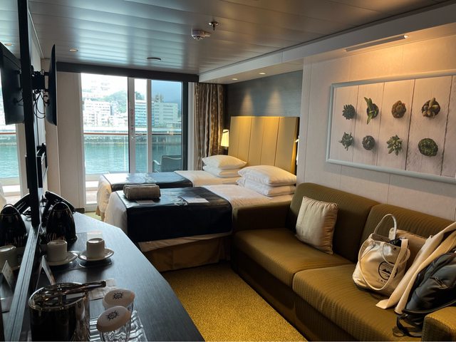行李已送至房門口。我們住9樓陽台艙,房間還算寬敞、約6坪。
