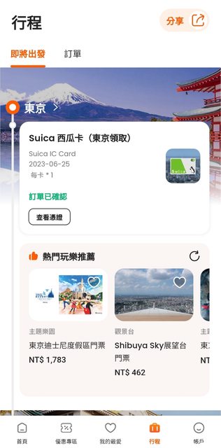筆訂單被歸在「即將出發」才想起來我根本還沒兌換