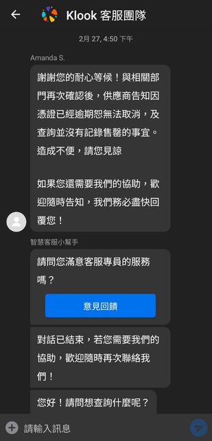 於是我在2月17日向Klook客服反映當初因IC晶片缺貨而沒有兌換到,客服表示會協助申請