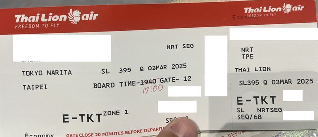 → amtb : 天謝地,感謝日本地勤、感謝泰獅航 03/05 14:16
