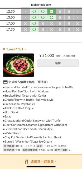 訂位是需要填信用卡資料的,而且我原本用tabelog訂的時間在tablecheck是已經客滿了(