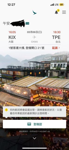推 pdself : cx564 延到15:50,家人遇到了 03/06 15:33