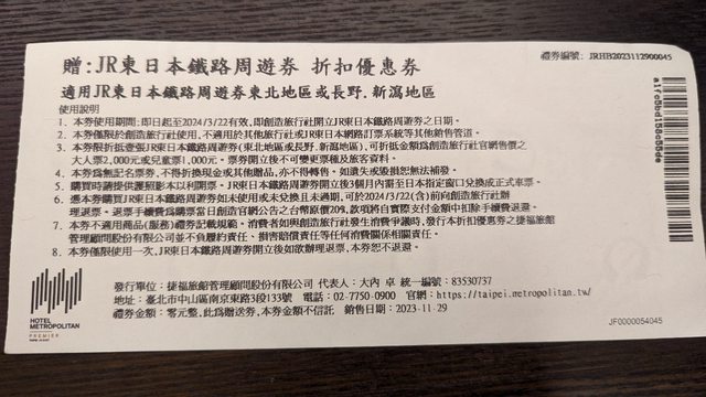 5.憑本券購買JR東日本鐵路周遊券如未使用或未兌換且未過期,可於2024/3/22(含)前向創
