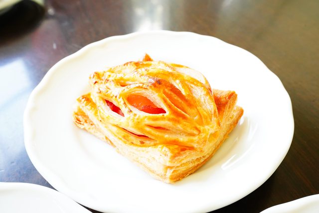品的蘋果派,使用微酸的紅玉蘋果做內餡,未加肉桂,可以吃到蘋果酸香多汁;第二個是