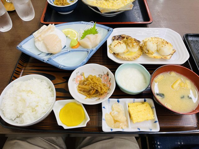 理也是蠻多元的,烤帆立貝、蕎麥麵、帆立貝刺身等等的,對比當時前一天吃的二条市場