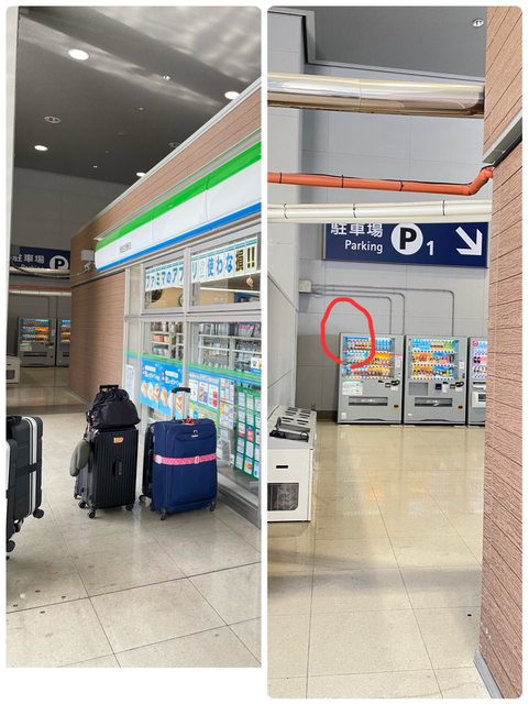 放關西機場2樓H出口,走出去會看到全家便利商店,旁邊有飲料販賣機,在販賣機第一台