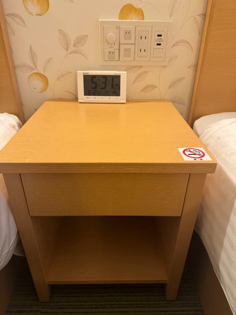 床頭有兩個插座,兩個USB插孔,電燈的控制開關也在這裡。