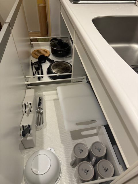 廚房備品-吃飯的筷子跟湯匙可以跟飯店借,電鍋租借一天1000日圓(買微波白飯就可以