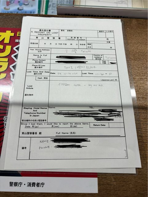 標題[遊記] 日本個人計程車遺失物拾獲經驗分享