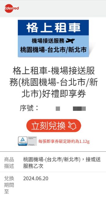 標題[讓售] 格上租車-桃園機場接送服務 雙北 即享劵