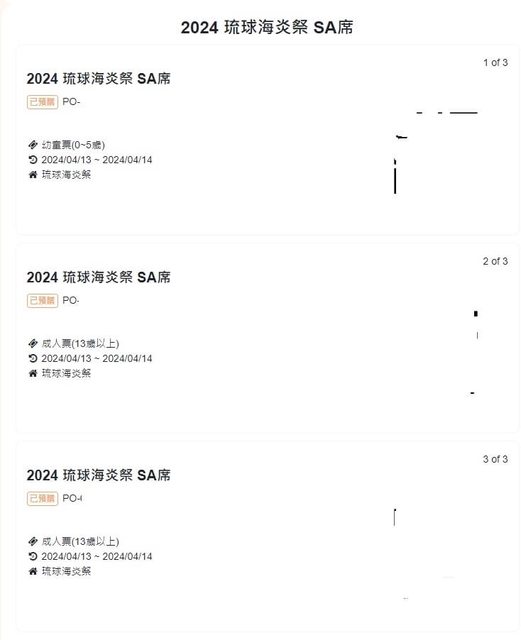 1. 讓售品項:沖繩海炎祭04/13門票,兩大一幼童(SA席)