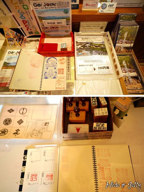 櫃台旁就有国吉城歷史資料館的簡介可以拿,一旁還有各種印章可以蓋,除了續百城章外