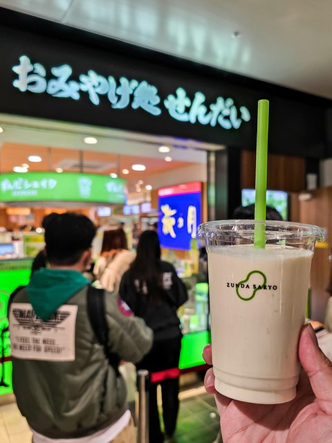 突然想喝毛豆奶昔,便走進車站內的專賣店來一杯