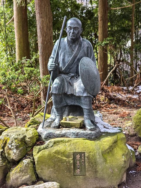 有兩尊雕像,紀念追求風雅、漂泊一生的俳諧師 松尾芭蕉