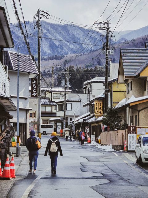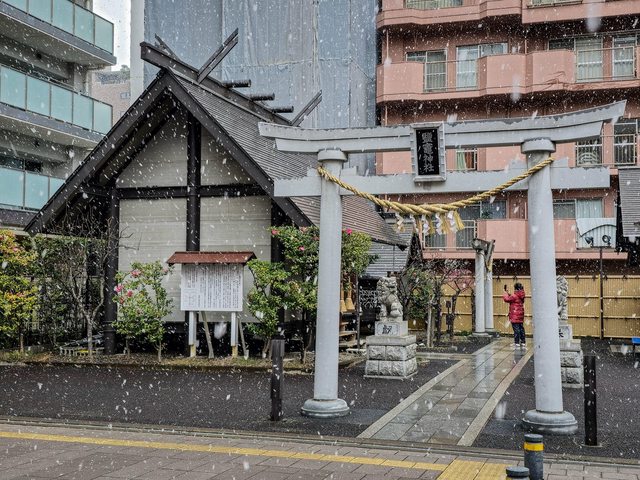 他們的蕎麥麵很讚,一吃就知道跟一般蕎麥麵店的不一樣 吃完雪也幾乎停了,回車站附近,日枝神社的登山口