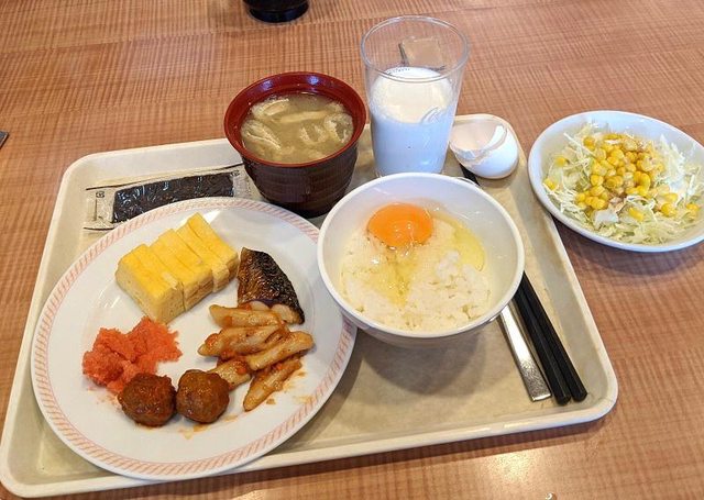 牛奶.飲料機.玉子燒.生雞蛋.烤魚