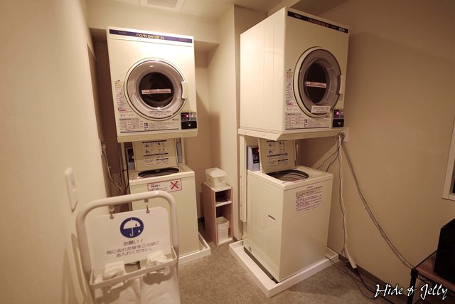 一樓的洗衣空間,有投幣式洗衣機與烘乾機各兩台,並免費提供洗衣精。