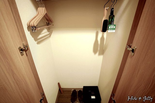 打開衣櫥,裡面還有保險箱。就衣櫥來說,這衣櫥佔房間的比例真的頗大。